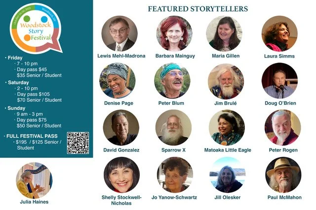 “Having always loved hearing and telling stories, it was my great pleasure to produce the first Woodstock Story Festival in 2016. Now, nine years later, we have assembled an extraordinary line-up of raconteurs and tale-spinners for the next go-round. This weekend is a celebration of the timeless magic and healing power of oral storytelling.”